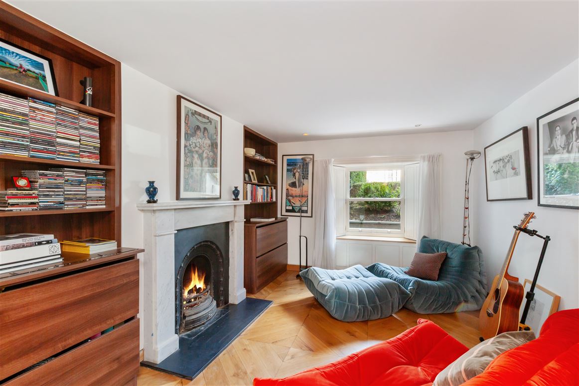 Private room to the front of the house with feature fireplace with granite surround, built-in units, herringbone oak flooring and recessed lighting