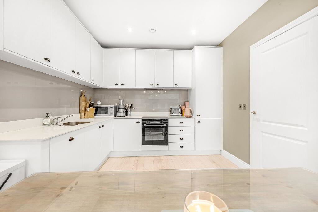 With wooden floor, beautiful fitted kitchen with stone worktops complete with upstand and feature splashback. Integrated appliances.