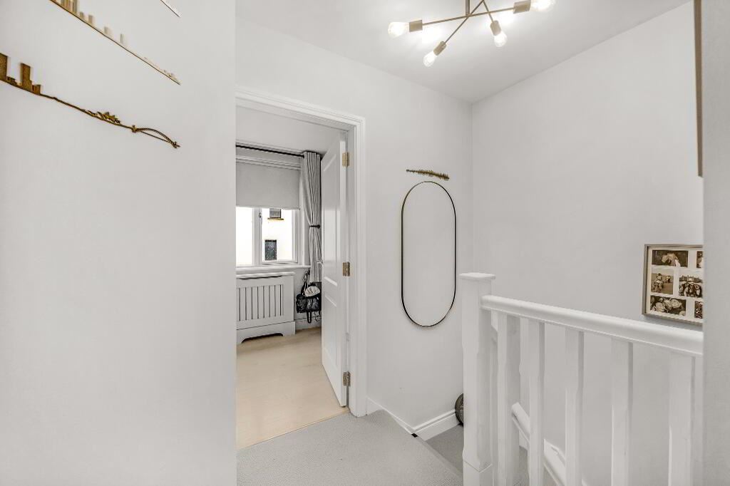 Spacious double bedroom to the rear of the property with wooden flooring, fitted wardrobes.