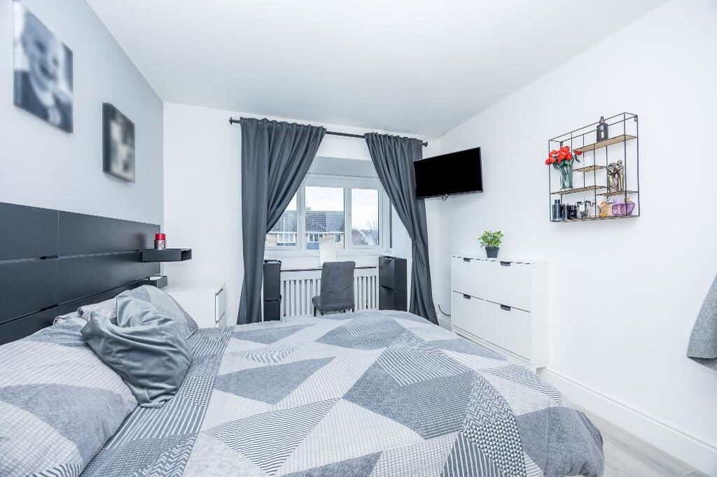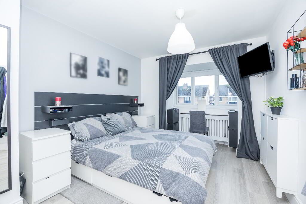 Positioned to front of property with bay window, fitted wardrobes and wood effect flooring. Access to the ensuite.