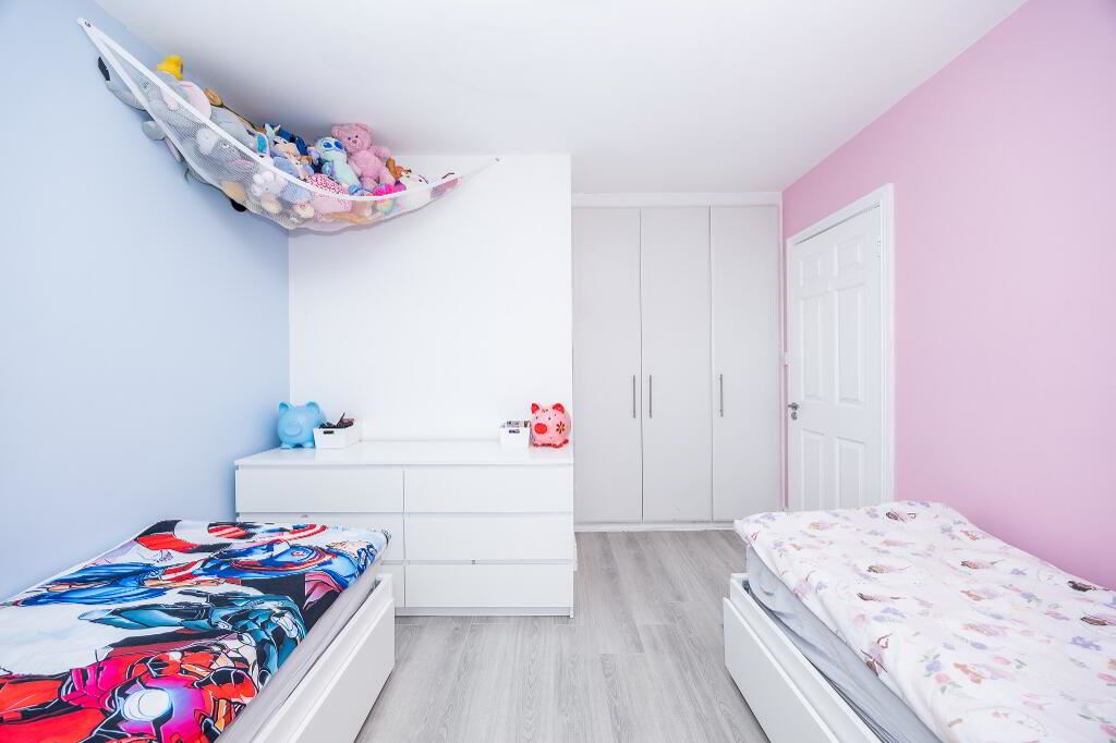 Double bedroom with built in wardrobes and wood effect flooring, located to the rear of the property