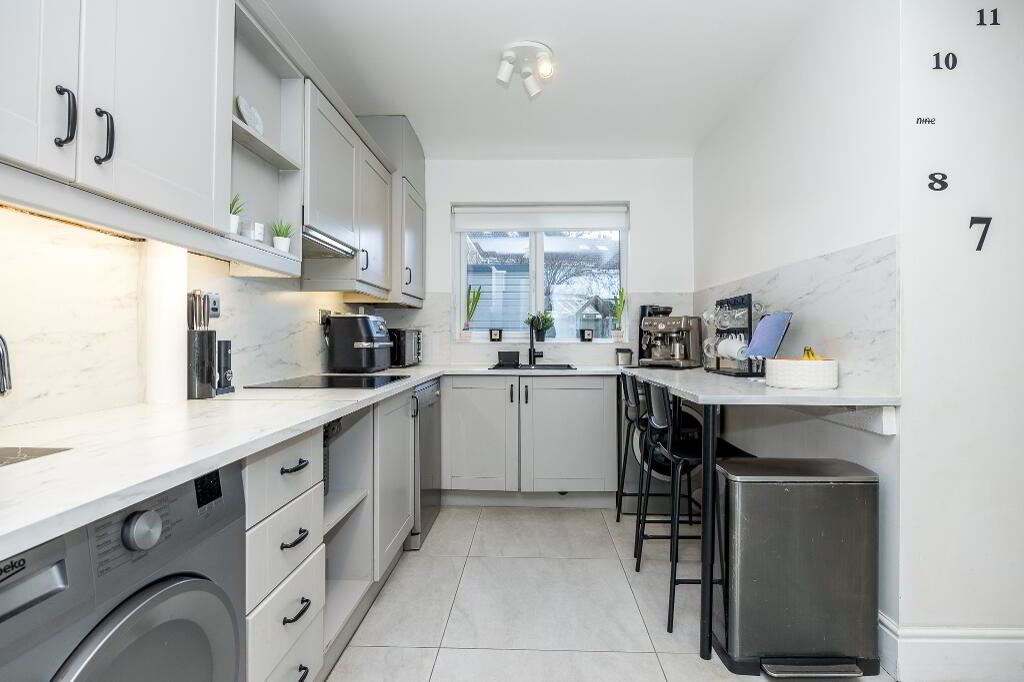 Beautiful fitted shaker style kitchen with tiled floored and surround. Located at the rear of the property with access through the sun room to the rear garden.