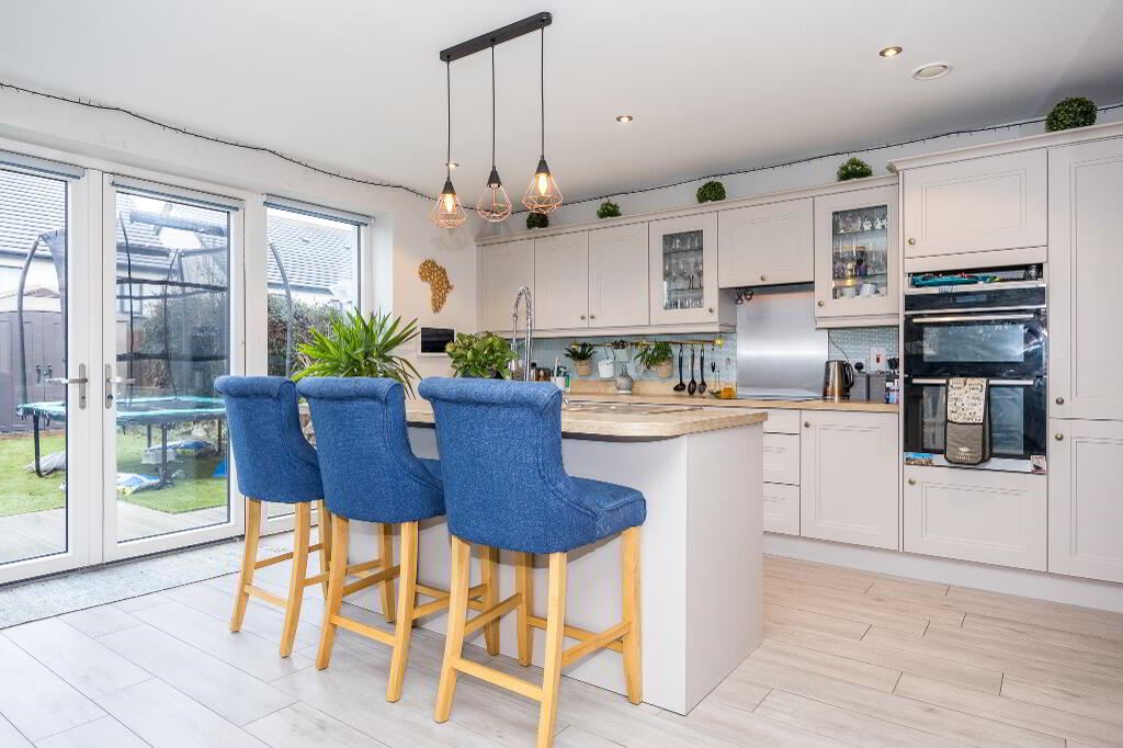 Beautiful shaker style fitted kitchen and contrast island. The kitchen/diningroom is positioned to the rear of the property with wood effect tiled flooring . Double french doors lead to back garden.