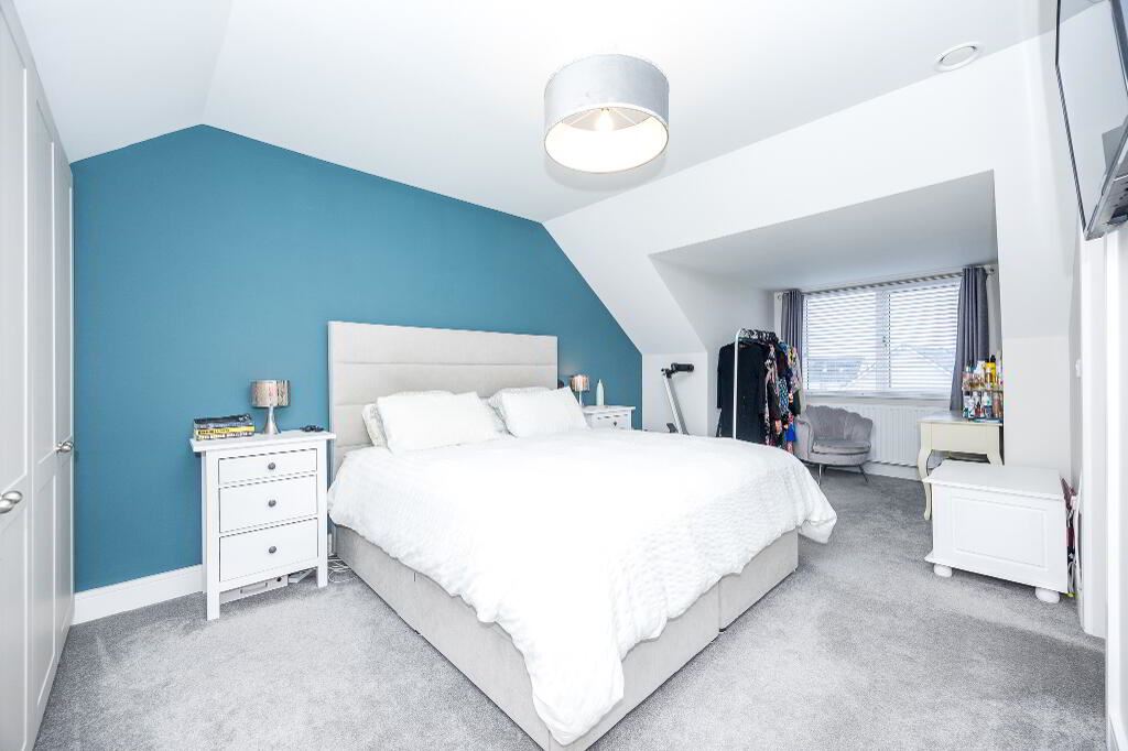 Spacious double bedroom with feature dormer bay window, en-suite and shaker style wardrobes
