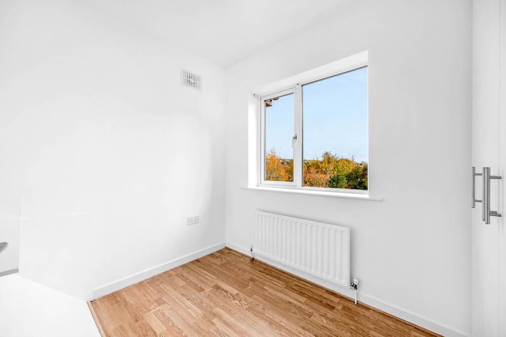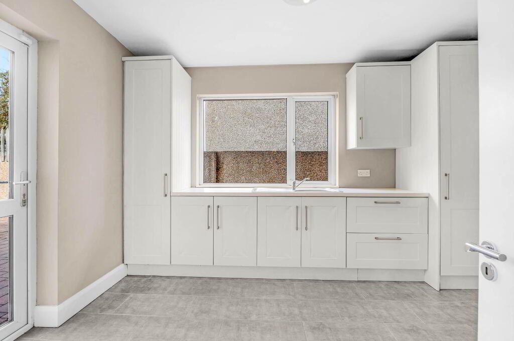 Fitted press units for additional storage. Sink. Plumbed for washing machine tumble dryer. Tiled floor. Window.