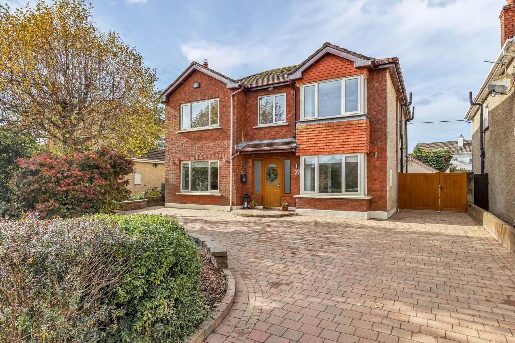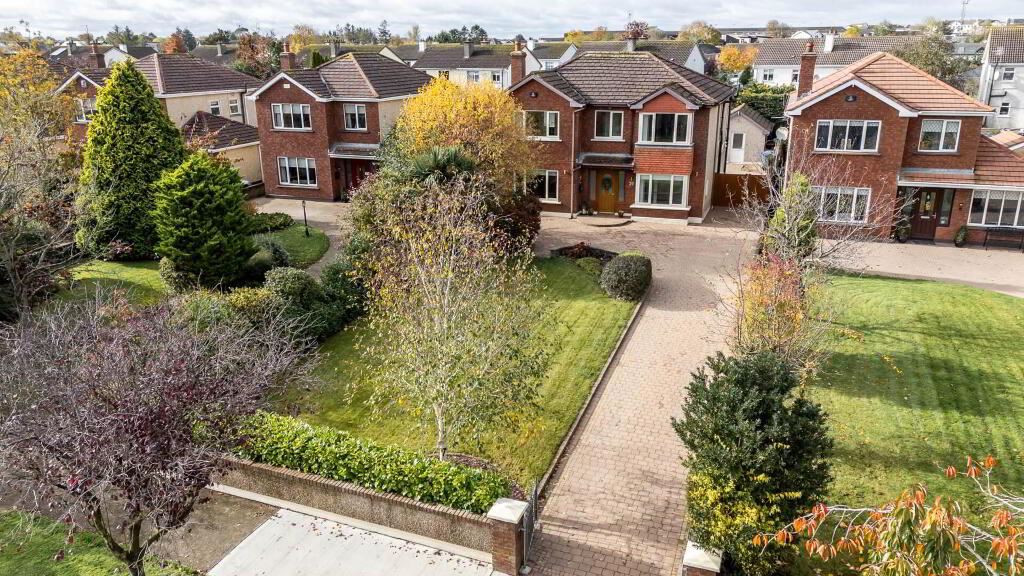 Grimes are delighted to present No. 39 The Hawthorns to the market, a beautifully presented four-bedroom detached family home with study, situated in this highly sought after and mature residential estate. This impressive property boasts a long driveway, large side entrance, and a superb block built garage to rear. Accommodation is spacious and well laid out throughout. The bright entrance hall sets the tone for this wonderful home, leading to a comfortable living room featuring a large picture window, stove fireplace, and bespoke built-in alcove units. To the rear, the open plan kitchen/dining area enjoys a dual aspect, with a modern fitted kitchen complete with marble countertops, Rangemaster oven/hob and an added Velux window that floods the space with natural light. Double patio doors lead from the dining area to the private west facing rear garden. Just off the kitchen/dining area, the extension provides an extra large utility room and guest w.c., offering excellent additional storage, with plumbing for a washing machine, dryer, and sink. To the front, the property`s double fronted design provides an additional living space, ideal as a playroom, home office, or second sitting room. Upstairs, there are four well-proportioned bedrooms and a study. All bedrooms feature laminate wood flooring and built-in wardrobes. Two of the double bedrooms to the front benefit from ensuite bathrooms with walk in showers. The study offers the perfect work from home environment, while a spacious family bathroom with tiled flooring and a walk in shower completes the first floor. The west facing rear garden is private and low maintenance, featuring a concrete block built shed, paved patio area, and a large side entrance. The property benefits from oil fired central heating and a mix of upgraded double and triple glazed windows. Nestled towards the end of a quiet cul-de-sac within The Hawthorns development, No. 39 offers superb privacy while being just minutes` walk from the village centre. A host of local amenities are on the doorstep, including schools, shops, cafs, sports facilities, etc, making this an ideal family home in a prime location.