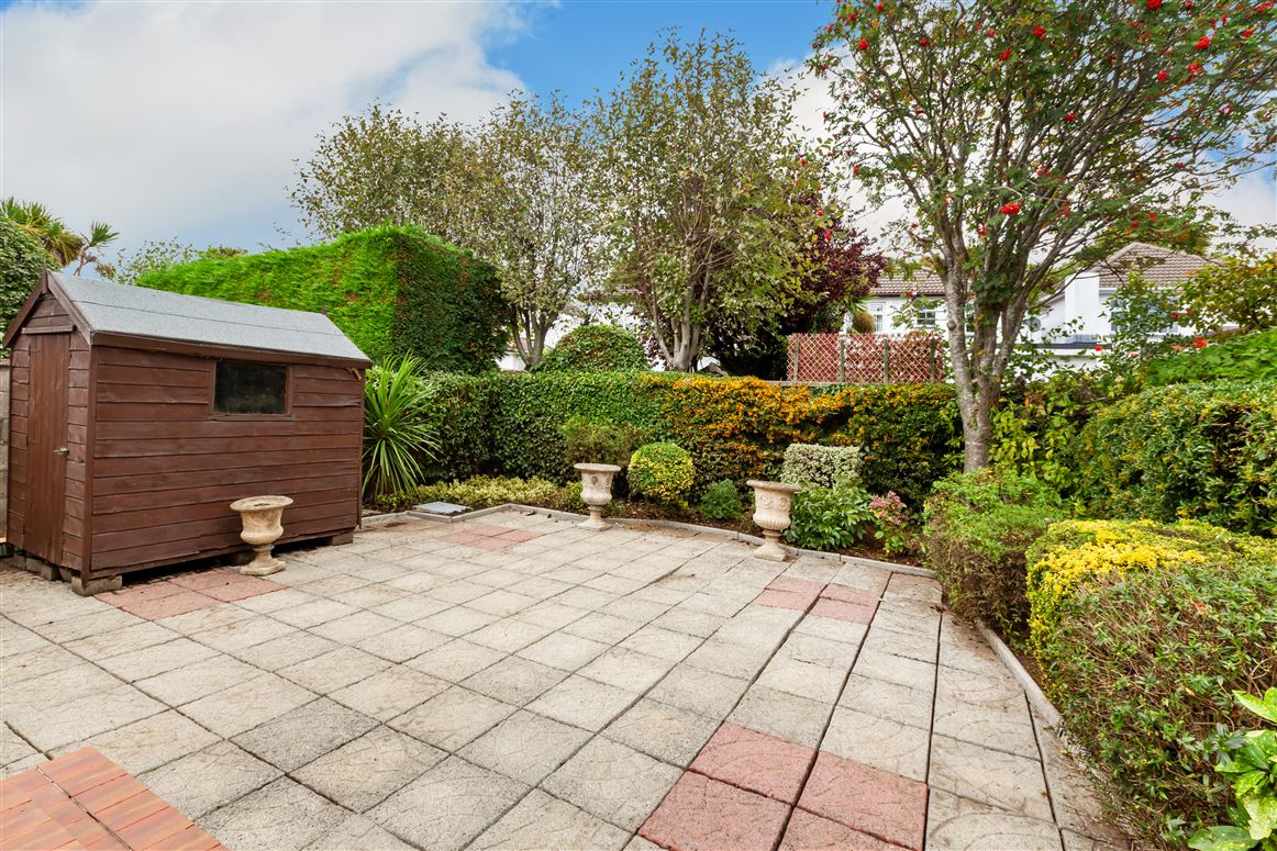 The low maintenance east facing rear garden is laid in paving with mature planting, a storage shed and side access. While to the front is a covered side car port and a walled garden with a driveway for off-street parking.