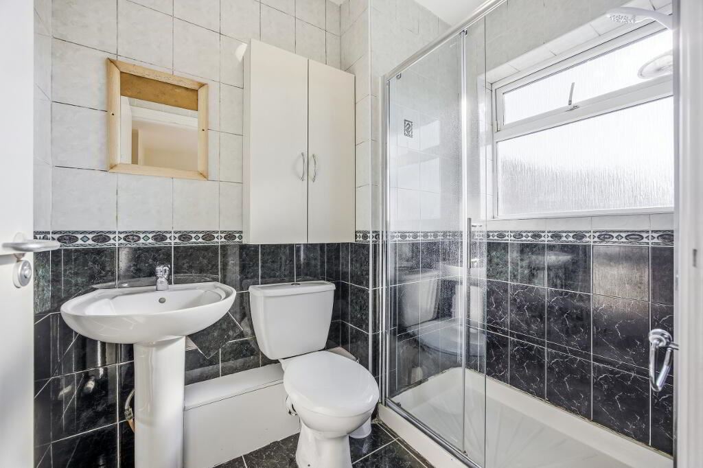 Tiled floor to ceiling with wc, whb and walk in shower.